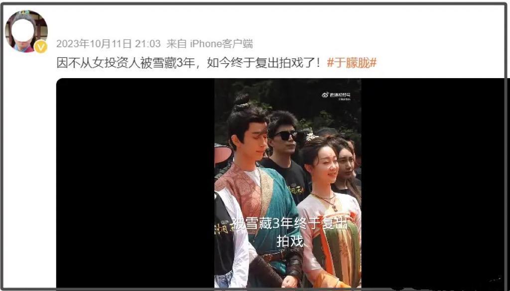 之前就有爆料说于朦胧因为不从女投资方、所以被雪藏了3年。直到2023年才复出了拍戏,重新复出后的于朦胧看起来瘦了很多,给人一种特别憔悴的感觉,少了年轻人该有的活力。