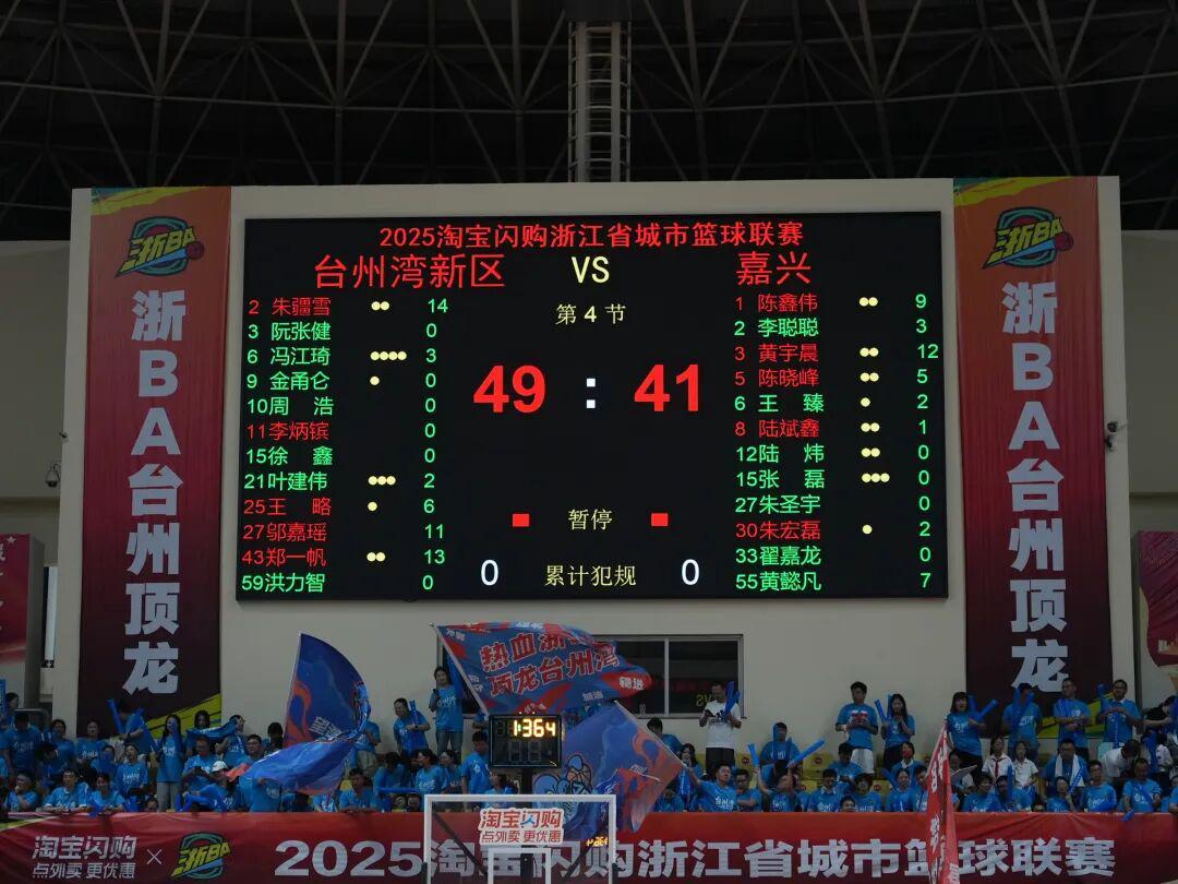 嘉兴队就将7分的分差拉平