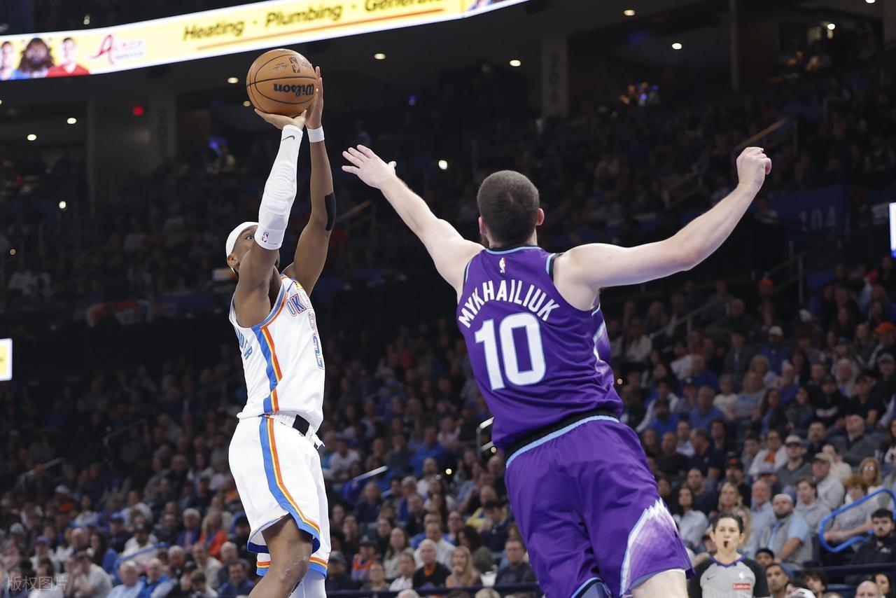 主场加时逆转爵士,亚历山大打出MVP风采。上半场他投篮7中4,三分2中1,罚球7中5,得到14分2篮板3助攻。