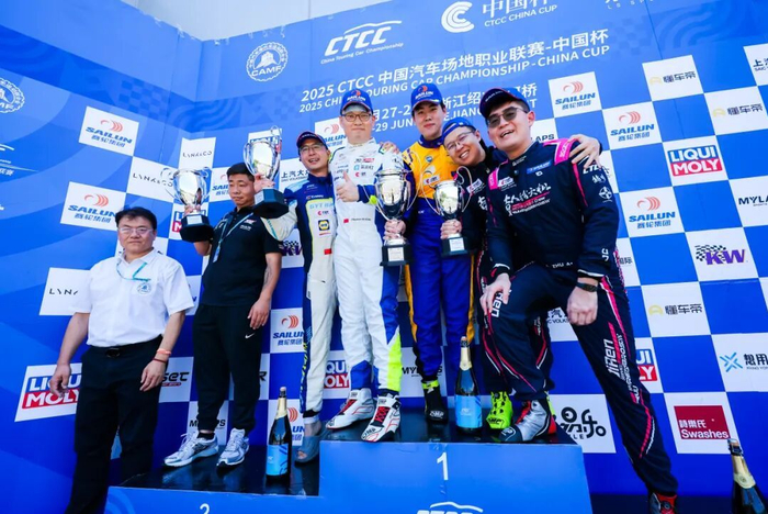 绍兴柯桥站,CTCC中国杯迎来了高温和暴雨的双重考验。第一回合正赛后期突降暴雨,比赛局面发生巨变,多台赛车发生失误冲出赛道。杨政凭借出色的驾驶技巧和强大的心理素质,一路稳健前行,以全场第三、组别亚军的成绩结束了首回合战斗。
