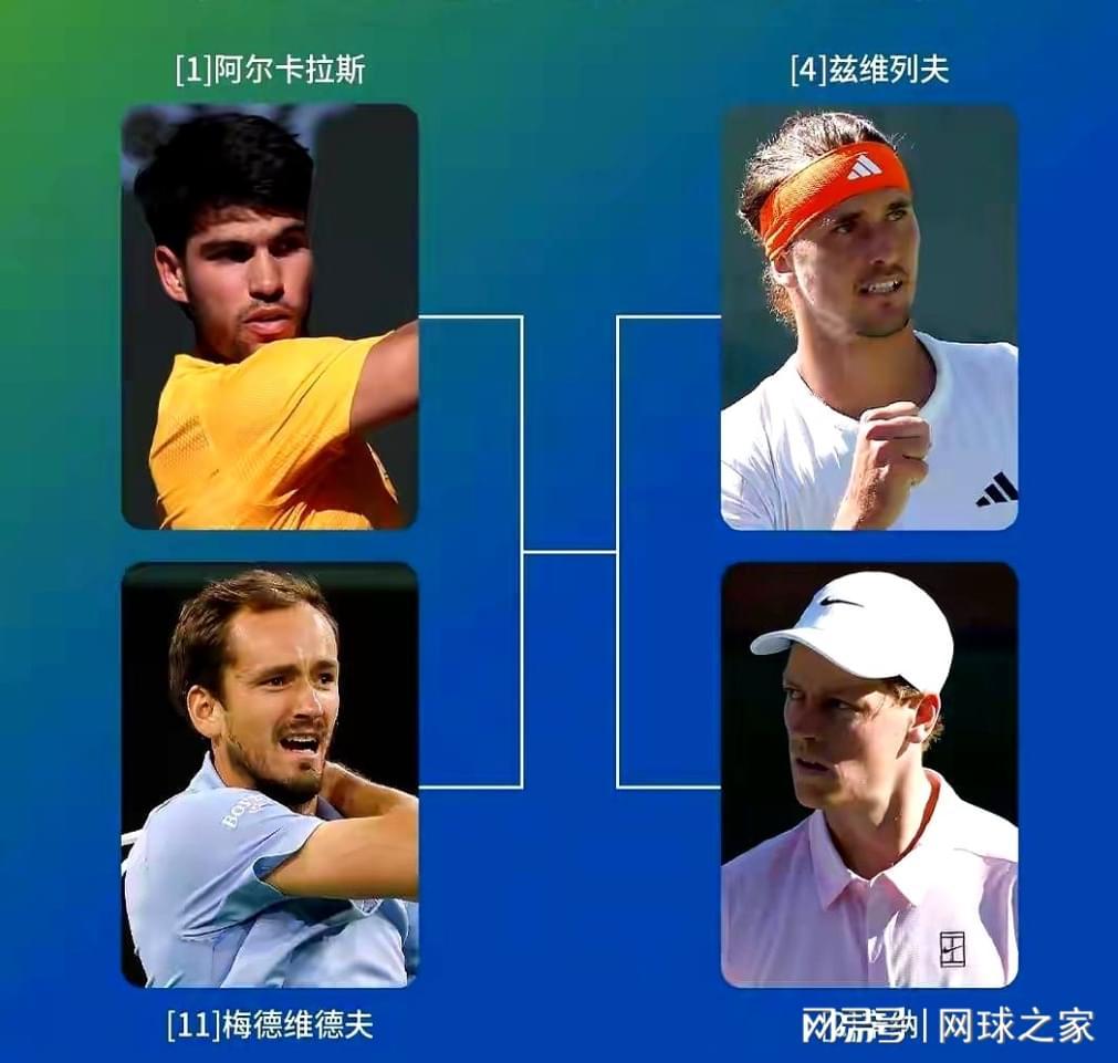 由辛纳、小兹维列夫、阿尔卡拉斯和梅德韦杰夫组成的印第安维尔斯大师赛四强阵容确定后,彻底让这站大师赛的话题热度飙升了起来。