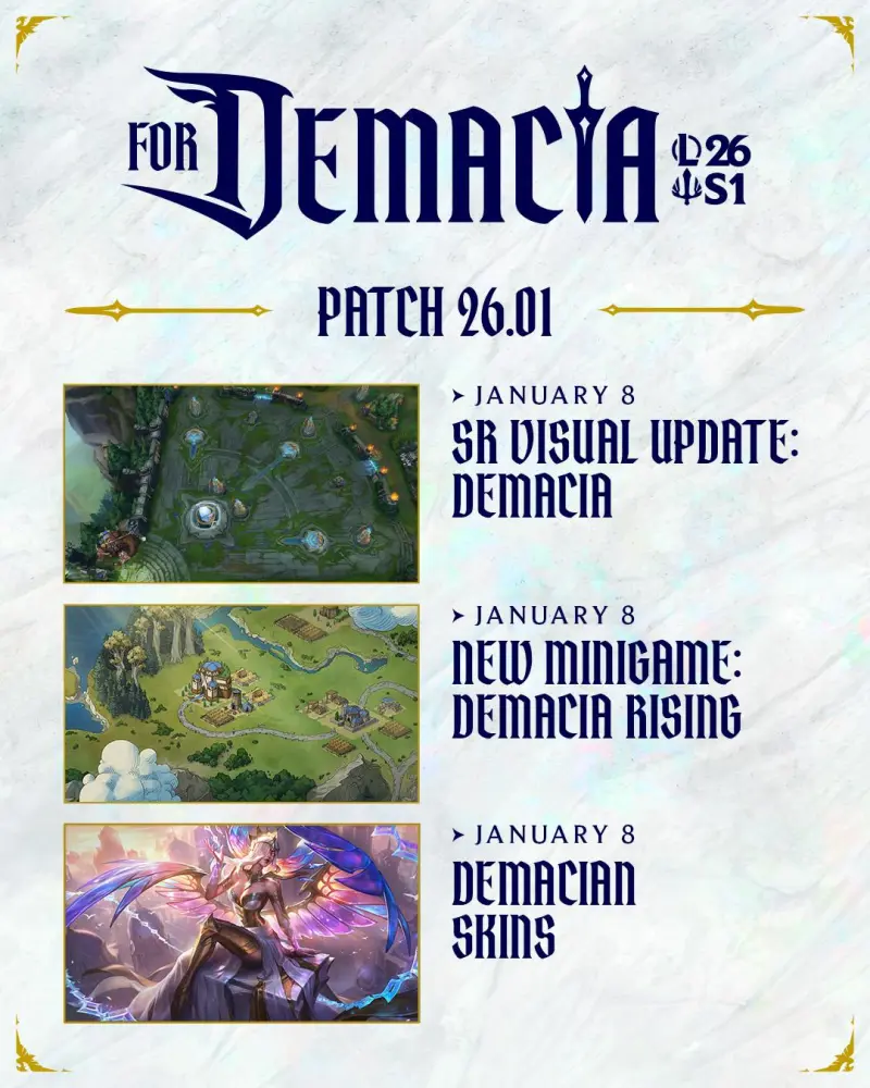 虎扑01月09日讯 LOL发布德玛西亚赛季版本规划(具体上线内容请以正式服为准),具体如下: